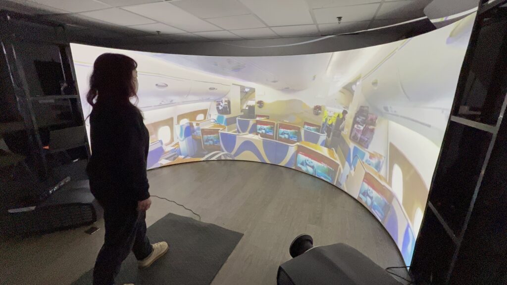 - Viewing Experience: Viewers stand or sit centrally or slightly forward, experiencing near-180°–220° effective comfortable field of view with strong peripheral engagement.